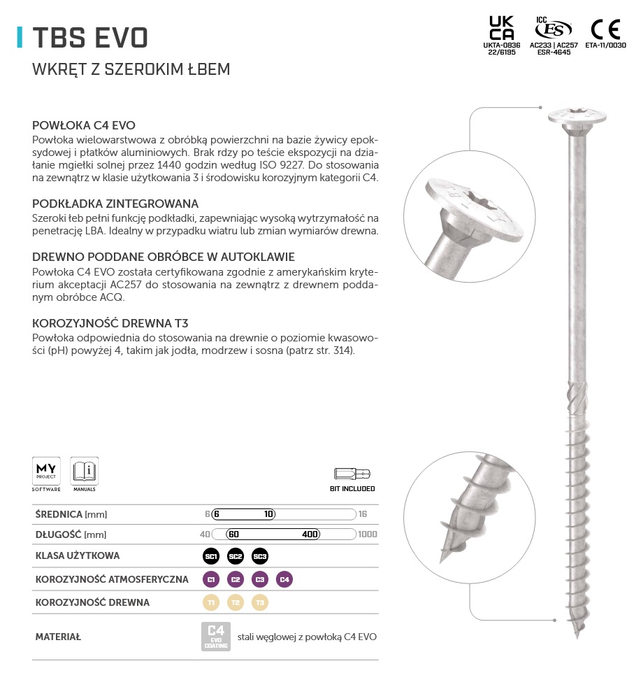 TBS EVO – wkręt z szerokim łbem do konstrukcji zewnętrznych