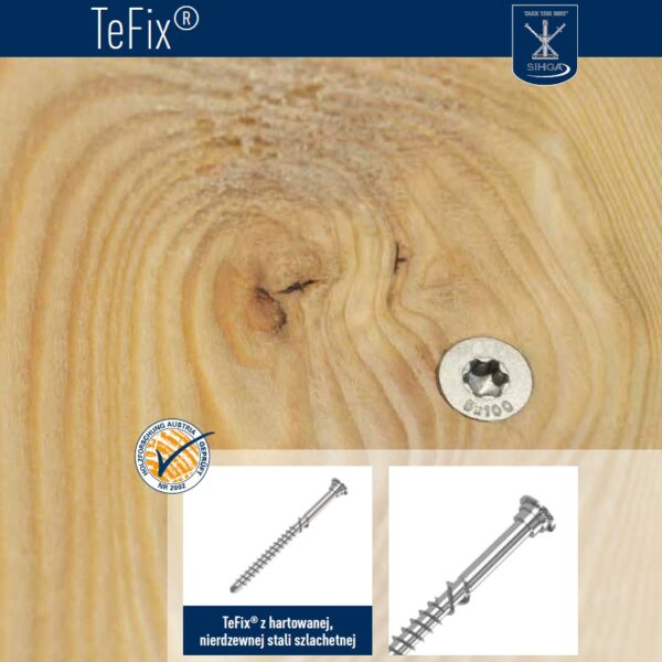 Wkręt montażowy Sihga TeFix 5,0×70 ze stali nierdzewnej z częściowym gwintem i gniazdem TX20. Idealny do drewna i płyt drewnopochodnych.